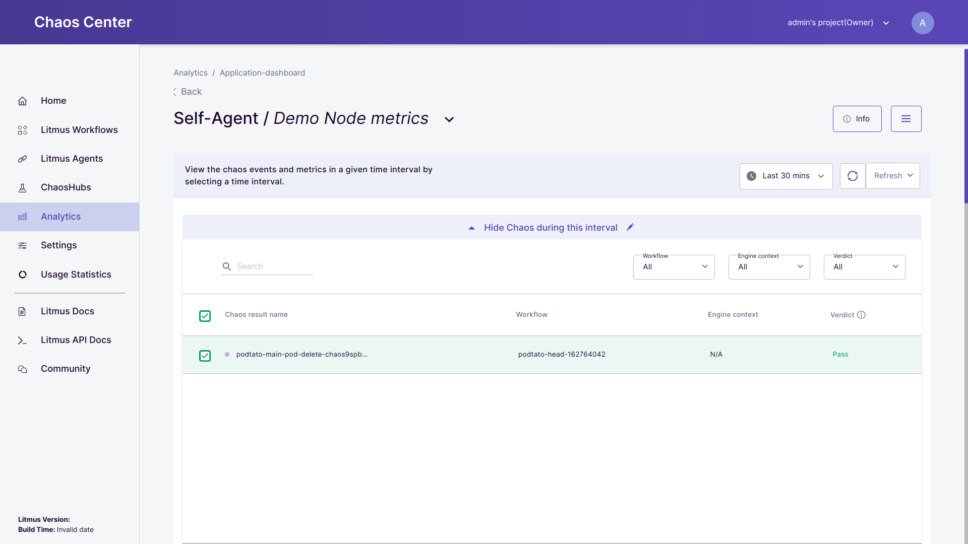 View chaos metric info: For the particular graph, if you want to view the chaos scenario -related information in the table then you may first expand the graph and hover over the specific chaos event to view all its chaos scenario -related information.